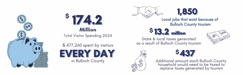 Justin discussed the economic impact of tourism in Statesboro, and across Bulloch County overall, to show how important of a driving force tourism really is. Here’s a look at some of those numbers:
